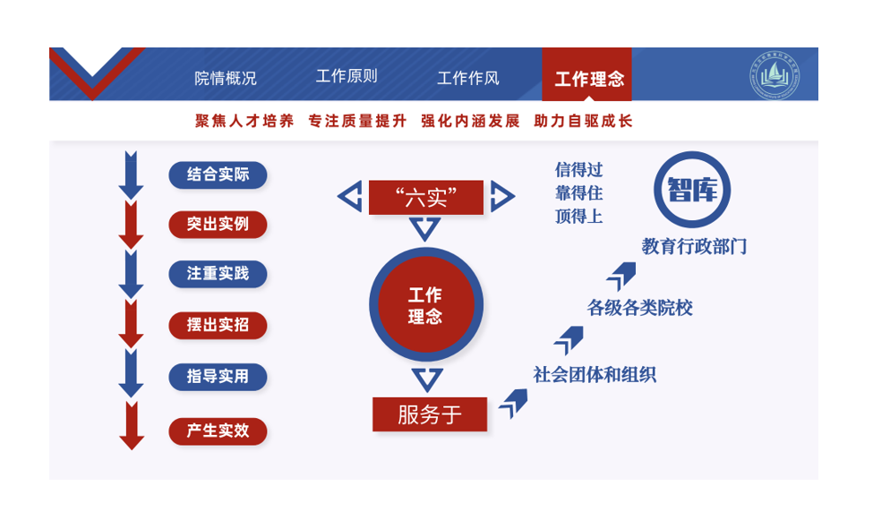北京龙帆教育科学研究院(以下简称教科院)是经国家行政管理部门批准,依托教育领域著名专家、知名学者和一线教师组成的智库型研究机构。教科院始终坚持党的领导,全面贯彻党的教育方针,遵循教育基本规律,以立德树人为根本任务,以高质量发展贯穿主线,以改革创新为自我驱动,聚焦人才培养和教育教学质量提升,致力于教师能力提升、教学方法改革、教材规划设计、教学成果培育、教研成果表达、科研课题论证及专业课程建设、专业评估认证、教育评价督导等内容的相关研究;坚持以“学生中心、产出导向、持续改进”的先进教育理念,助力教育内涵式发展;以“系统构建、动态调整、闭环管理”的科学组织方式,助力院校现代化治理;以“问题导向、主动探索、精准开方”的有效实施路径,助力教师自驱型成长,真正实现理论实践相结合、教师学员互促进,能力水平双提升。研究院始终秉承“专业精干的匠人精神,精益求精的品质精神,追求卓越的奋斗精神、与时俱进的创新精神”的工作作风,按照“结合实际,突出实例,注重实践,摆出实招,指导实用,产生实效”的工作理念,为学校、教师和学员提供更多的专业化优质服务,努力成为教育行政部门、各级各类院校、社会团体和组织“信得过,靠得住,顶得上”的教育智库,助推教育领域产学研用深度融合及赋能转化,以实际行动助力新时代教育强国建设。