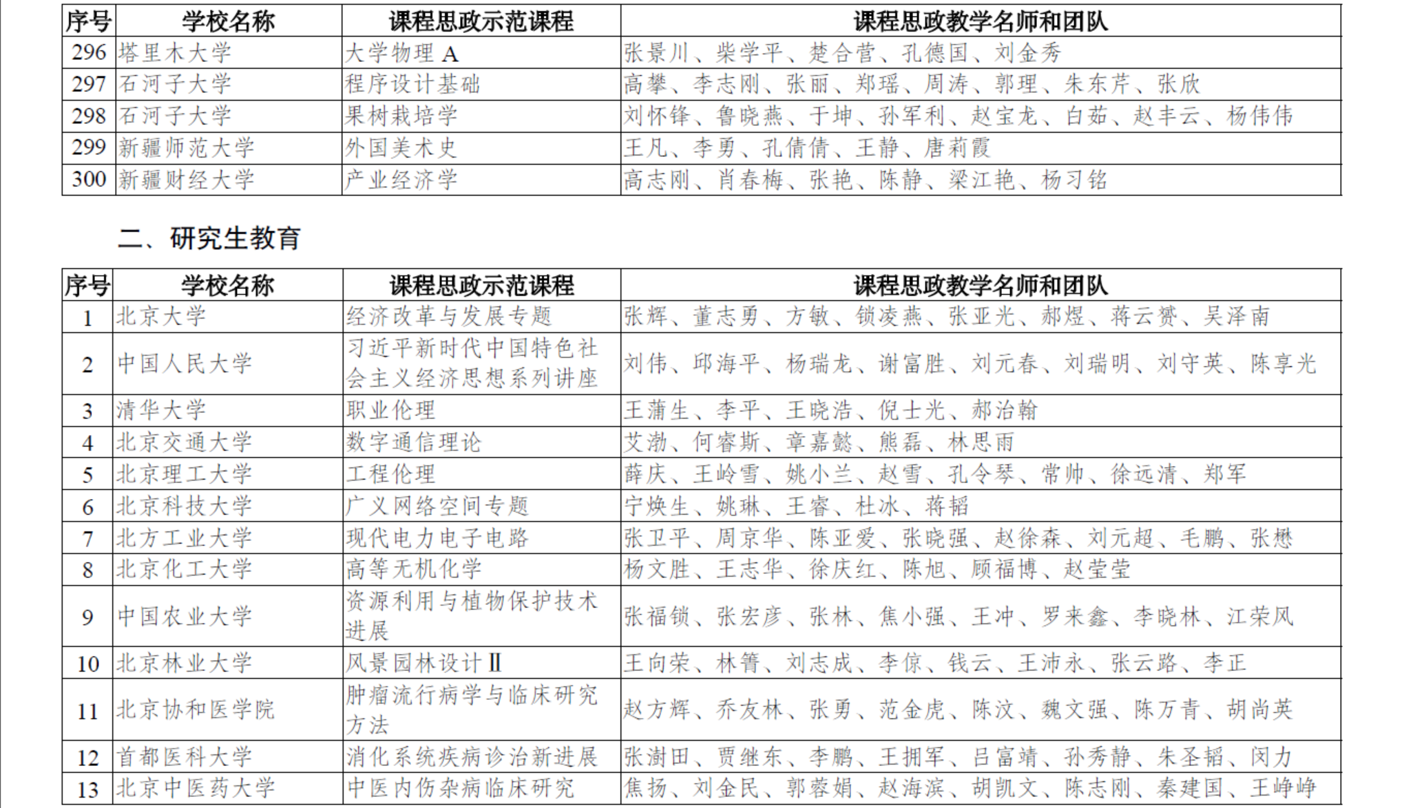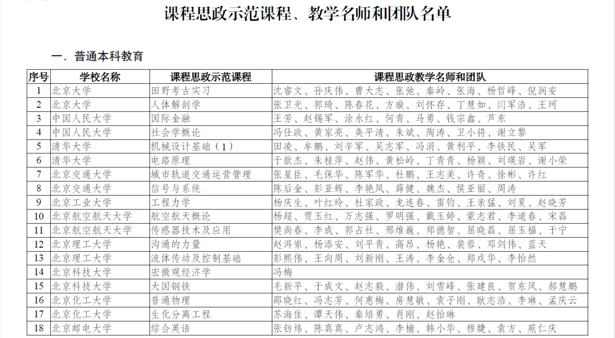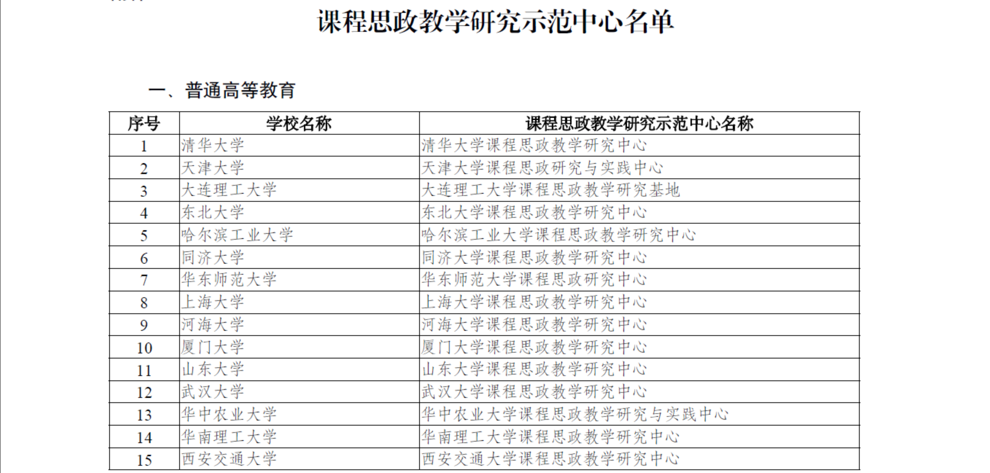 为深入贯彻落实习近平总书记关于教育的重要论述和全国教育大会精神,贯彻落实中共中央办公厅、国务院办公厅《关于深化新时代学校思想政治理论课改革创新的若干意见》,深入实施《高等学校课程思政建设指导纲要》,经组织推荐、专家遴选、会议评议和网络公示等,确定课程思政示范课程699门、课程思政教学名师和团队699个、课程思政教学研究示范中心30个。现予以公布。