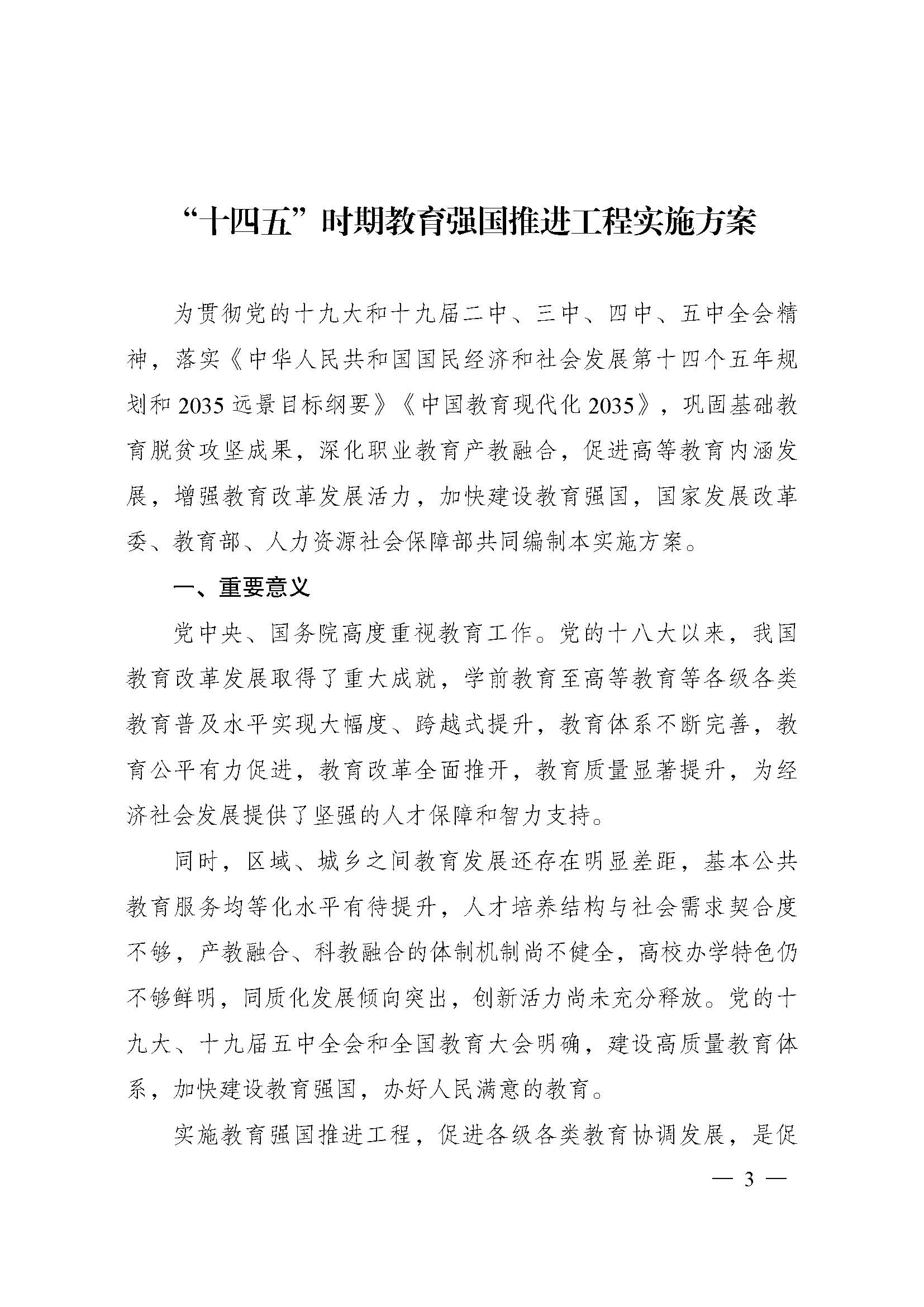 关于印发《“十四五”时期教育强国推进工程实施方案》的通知【 发改社会〔2021〕671号 】