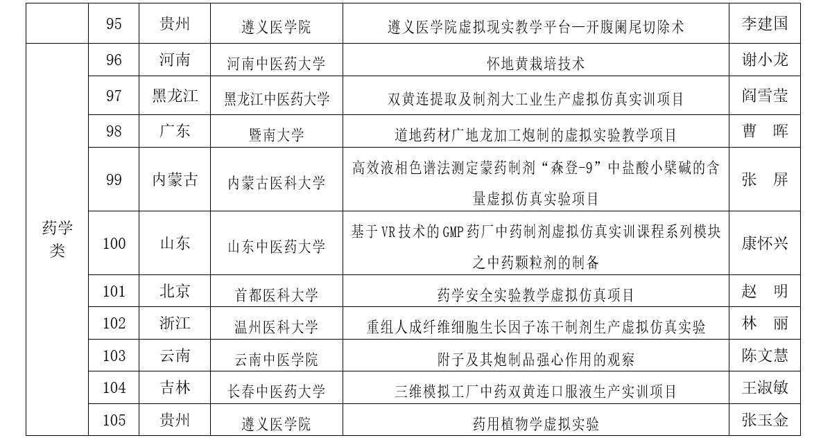 根据《教育部关于开展国家虚拟仿真实验教学项目建设工作的通知》(教高函〔2018〕5号)精神,在各省级教育行政部门推荐基础上,经综合评议和公示,我部决定认定105个虚拟仿真实验教学项目为首批国家虚拟仿真实验教学项目,现予以公布(名单见附件)。